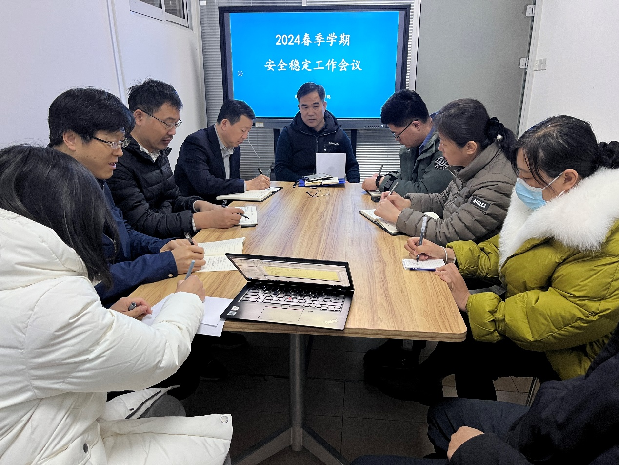 杨凯指出,安全稳定工作需要全体师生的共同努力,全体成员要高度重视,提高政治站位,深入排查安全隐患,积极进行自查和整改落实,切实加强公司安全稳定工作,进一步维护公司安全稳定。