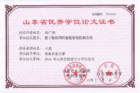 3. 获评校级优秀学士学位论文15篇;山东省优秀学士学位论文2篇。