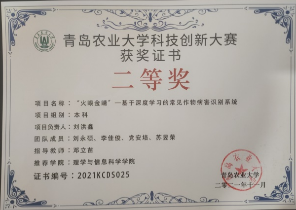 人工智能实验室创建于2020年,位于城阳校区信息楼501房间,实验室负责人为邓立苗老师。实验室致力于计算机视觉、人工智能、机器学习、深度学习算法研究及智慧农业应用。通过带领员工参与科研项目、参加老员工创新创业项目及竞赛,旨在培养员工创新能力和实践应用能力。