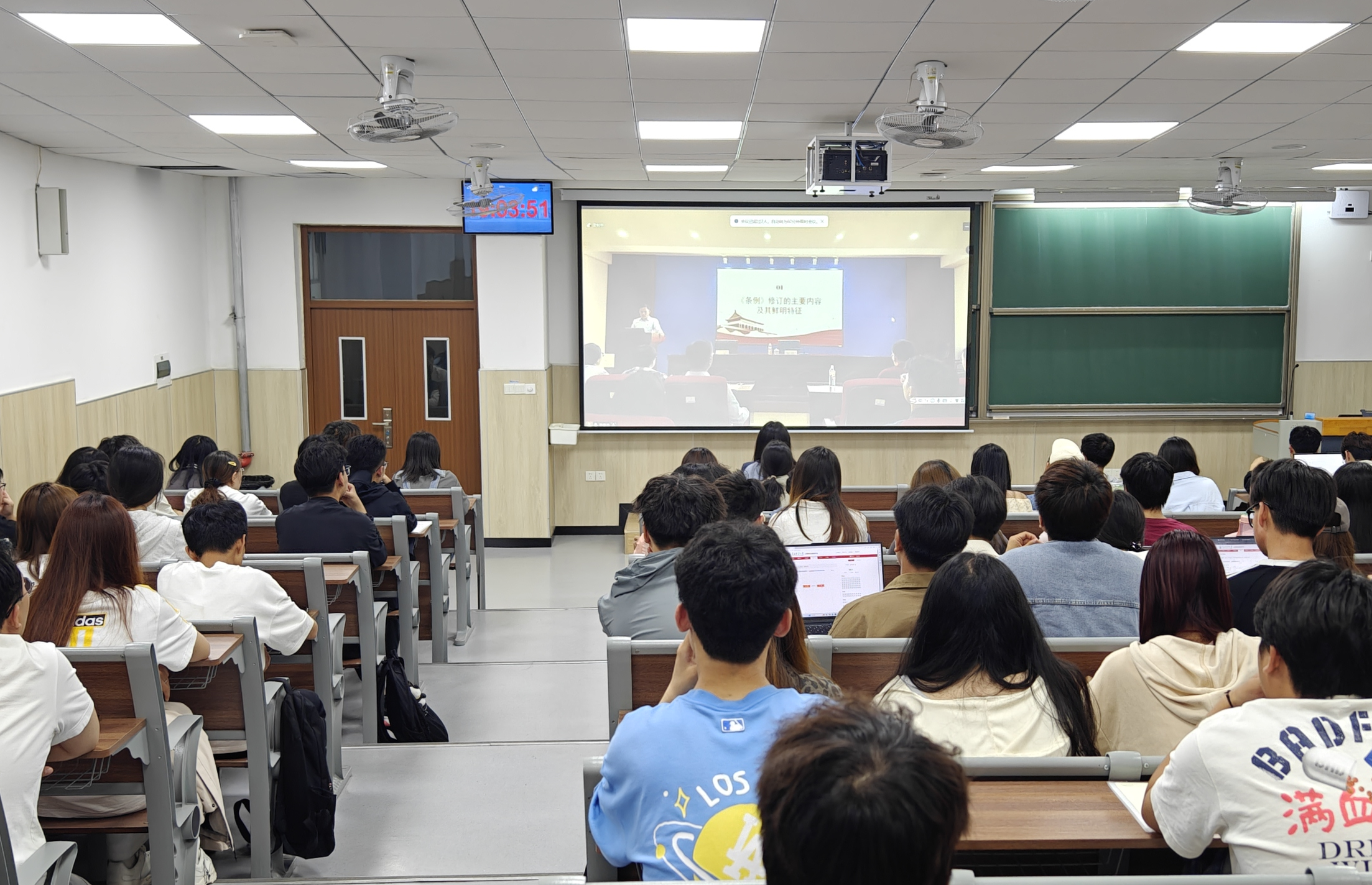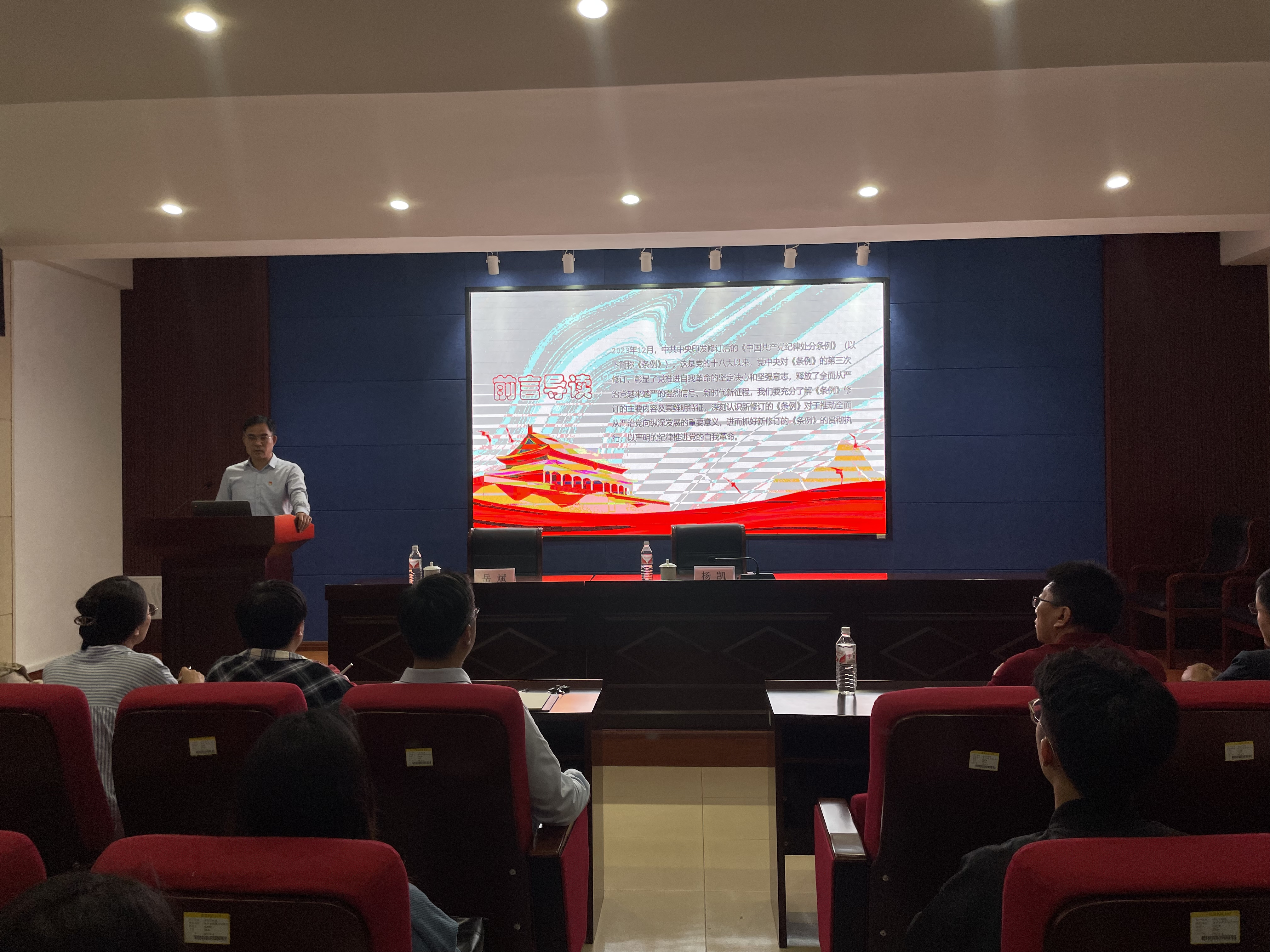 杨凯从《中国共产党纪律处分条例》修订的主要内容及其鲜明特征、《中国共产党纪律处分条例》对于推动全面从严治党向纵深发展的重要意义及如何抓好新《中国共产党纪律处分条例》的贯彻执行三个方面为全体师生上了一堂内容丰富的专题党课。他指出,新时代新征程,我们要抓好新修订的《中国共产党纪律处分条例》的贯彻执行,以严明的纪律推进党的自我革命。最后,他指出大家成为合格党员要做到“五有”:一是有追求,争做优良道德品行的践行者、大众的道德标杆;二是有正气,坚持做到公私分明,先公后私,克己奉公;三是有责任心,要走在时代前列,勇挑时代重担;四是有标准,要以党员的标准严格要求自己,践行党的群众路线;五是有底线,始终尊崇并遵守党章,对照党员义务,反躬自省、永葆初心。