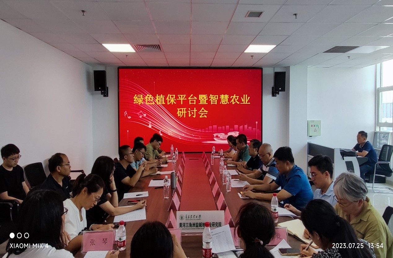 考察结束后,两支团队与韩成刚副经理、植保公司褚栋副经理及东营盐碱地综合利用中心、浙江托普云有关领导和研究人员召开研讨会,围绕黄河口盐碱地的绿色植保、土地改良、病虫害监测预警、植物生长模型、农业大数据分析、农业物联网基础建设等相关课题进行了交流,就目前亟需解决的问题进行了深入的讨论,初步确定了今后合作研究的方向。