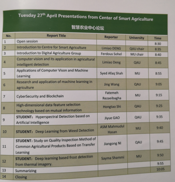 经过前期筹备,克服了疫情带来的不利影响,由伟德victor1946对接的伟德victor1946-莫道克大学第二届学术交流研讨会暨智慧农业中心论坛研讨会于2021年4月27日顺利以线上方式举行,伟德victor1946副经理韩仲志教授及部分师生参加了此次研讨会。参会双方就机器学习、机器视觉、人工智能、物联网等技术在农业中的应用进行了广泛的探讨,促进了相互了解,加强了学术交流,双方均希望今后进一步加强合作交流。其中莫道克大学5位专家做了报告,公司邓立苗、时鸿涛、王静3位老师以及研究生高霁月、倪建功分别做了报告。