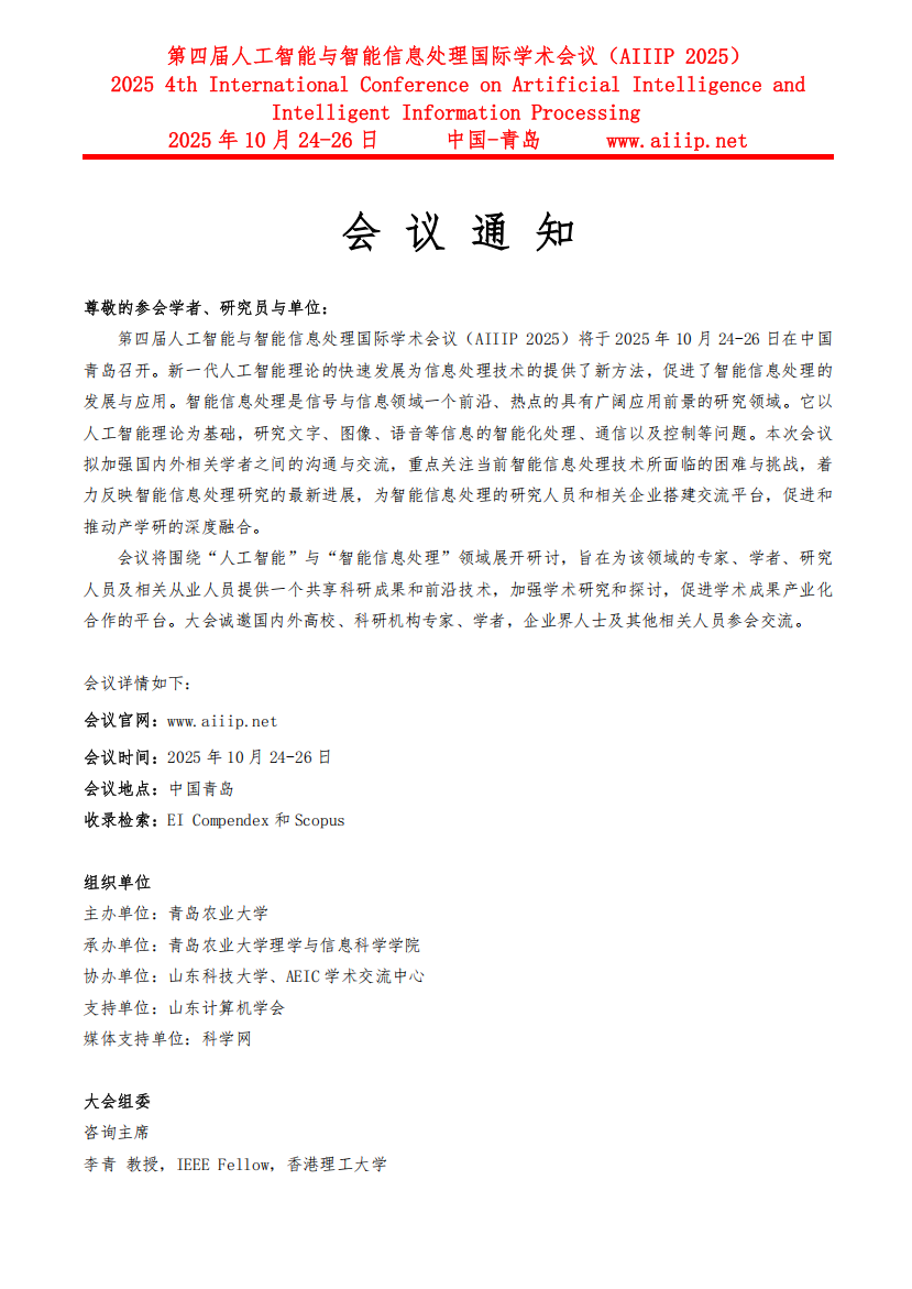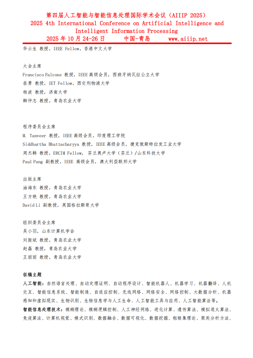 第四届人工智能与智能信息处理国际学术会议(AIIIP 2025)会议通知.pdf