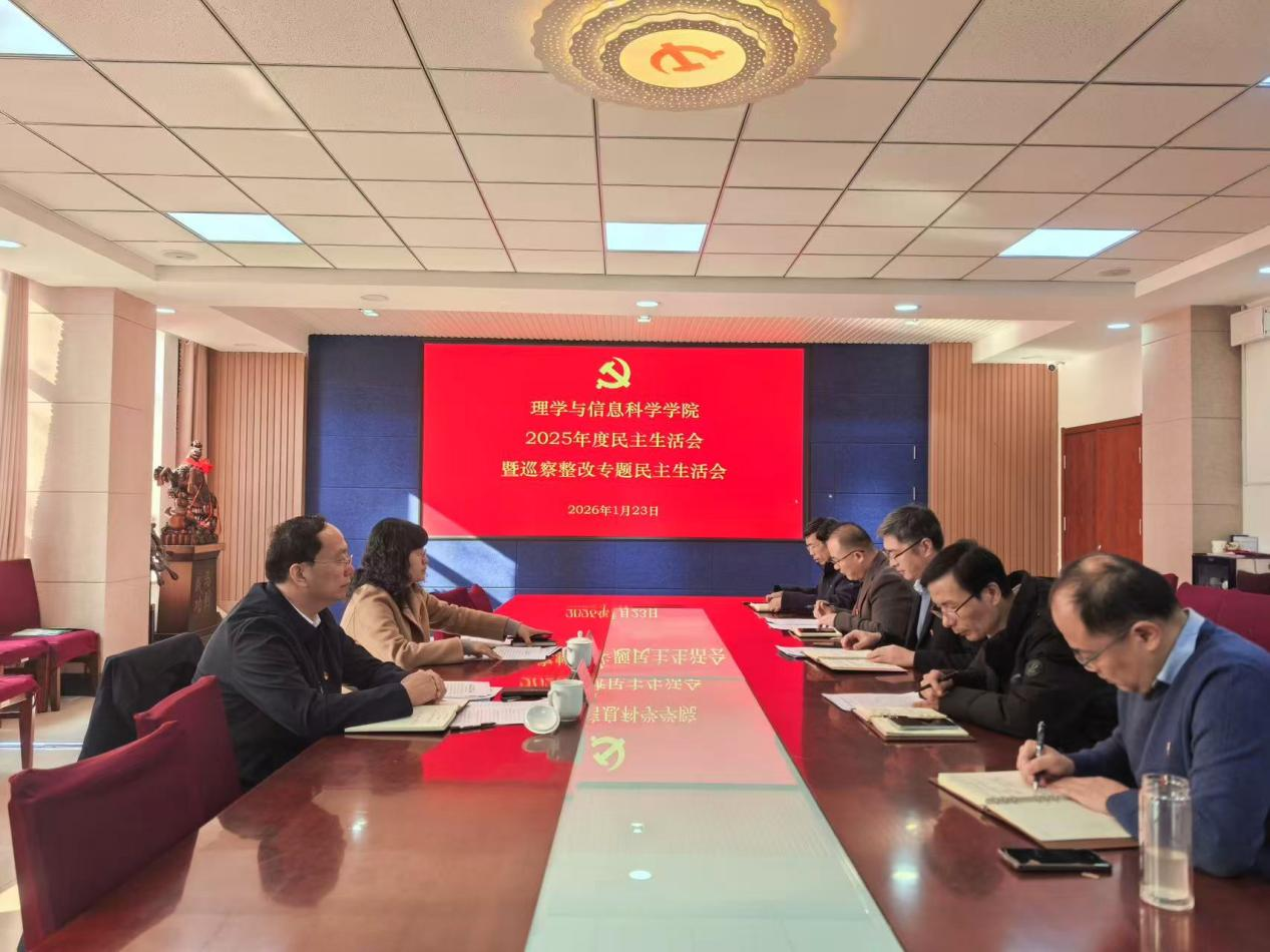 1月23日,理学与信息科学公司党委领导班子在信息楼215会议室召开2025年度民主生活会暨巡察整改专题民主生活会。公司党委委员、统战部部长赵龙刚,纪委(监察专员办公室)综合处处长张胜芳,理学与信息科学公司党委全体班子成员参加会议。