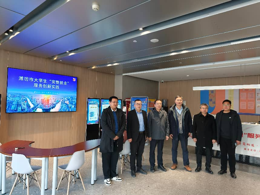 走访团队先后前往潍坊国际人力资源产业园与齐鲁创智园,开展实地调研与座谈交流。在潍坊国际人力资源产业园,调研组与潍坊市奎文区人力资源和社会保障局副局长马万祥,奎文区公共就业和人才服务中心党委委员王龙、就业科科长刘亮等相关负责人深入座谈。双方围绕当前高校毕业生就业形势、地方人才政策、校企供需对接新模式等核心议题交换了意见,并就如何利用专业化人力资源服务平台,为公司毕业生提供更精准、全方位的就业指导与服务达成初步合作意向。