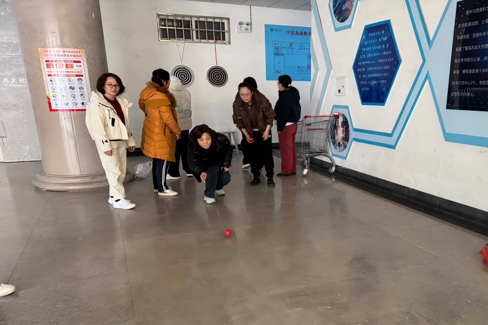 本次活动紧扣“健康、参与、友谊”的理念,设置了冰壶、飞镖、保龄球、踢毽子、跳绳五个兼具趣味性与竞技性的项目。活动现场气氛热烈,欢声笑语不断。冰壶赛道上,女教职工凝神聚力、精准操控;飞镖区中,老师们凭借敏锐的观察力与沉稳的心态精准命中靶心,展现出严谨治学之外的专注风采;保龄球赛场,大家动作规范、挥臂有力;踢毽子、跳绳等传统项目中,女教职工身姿轻盈、精神饱满,展现出积极向上的精神面貌。