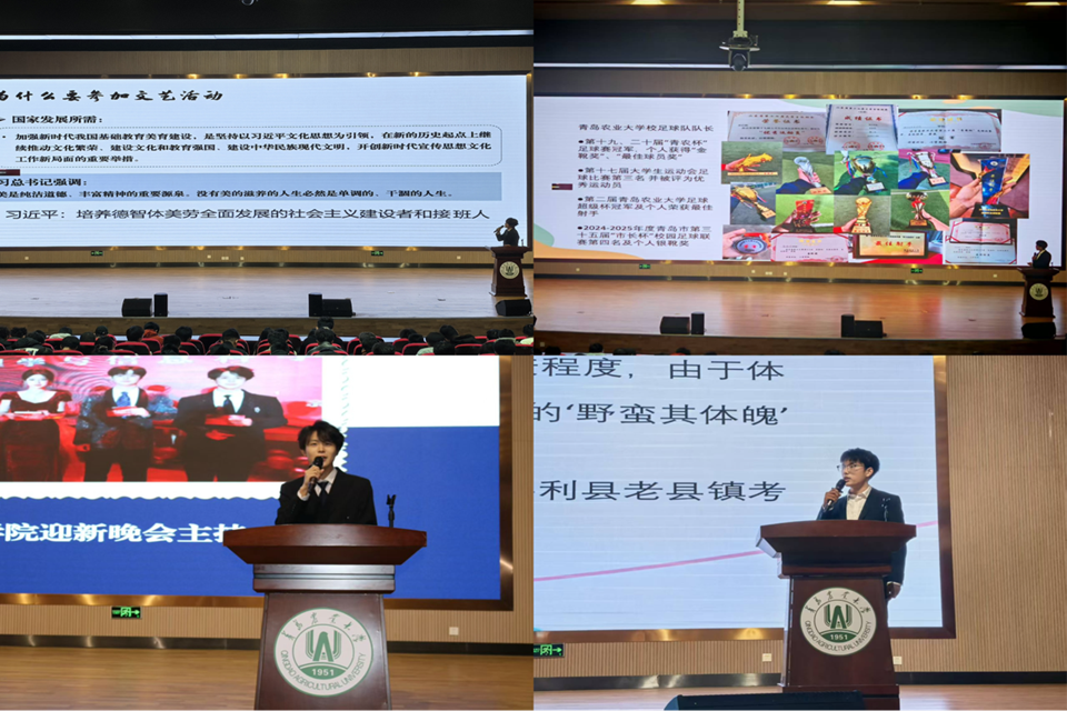 紧接着,在“青春践行担使命,志愿深耕润乡土”实践方面,计科2401班任俊霏、云计算2303班马光锦、计科2402班李甲豪三位实践代表分别分享了赴东营湿地实践服务团、赴临沂葡萄之乡实践服务团和赴济宁梁山支教服务团的实践经历。他们详细介绍了生态调研、科技传播、非遗传承和支教助学等实践内容与成果,阐述了农业赋能、红色传承的重要性,有效激发了同学们参与社会实践的热情与决心。